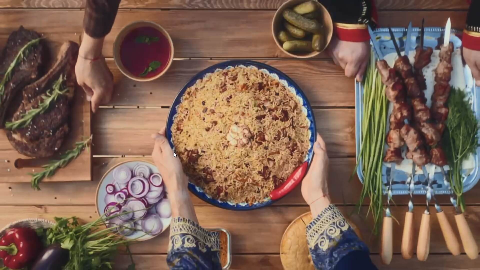 Мясо с золотисто-коричневой корочкой, медового оттенка плов, алые томаты и свежая зелень… Голландский натюрморт XVII века? Нет, гриль-станция Gratar Inclusive в работе!