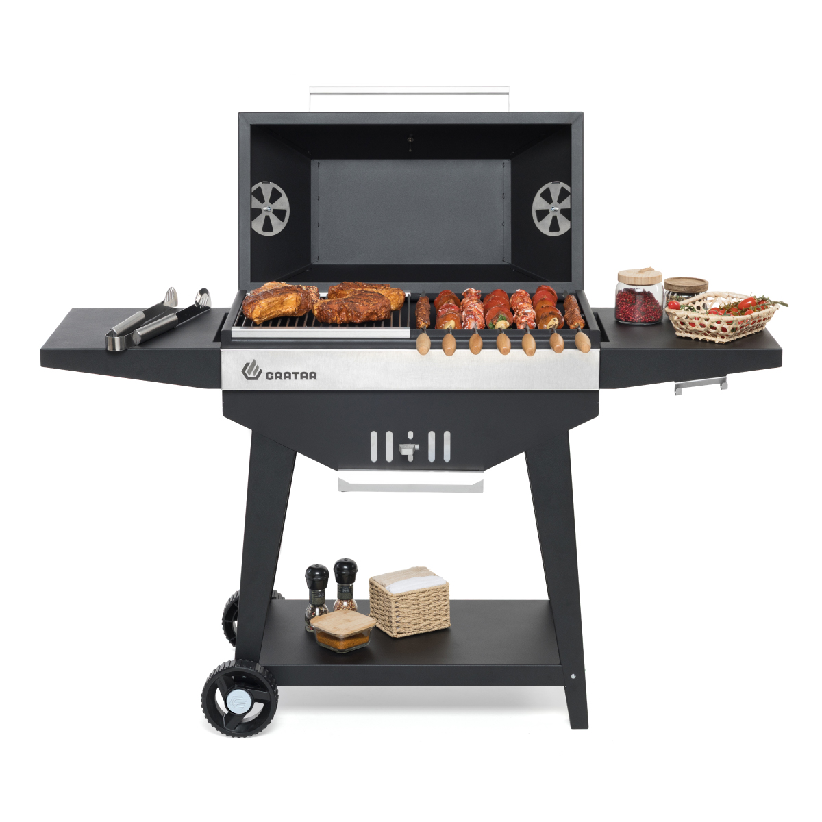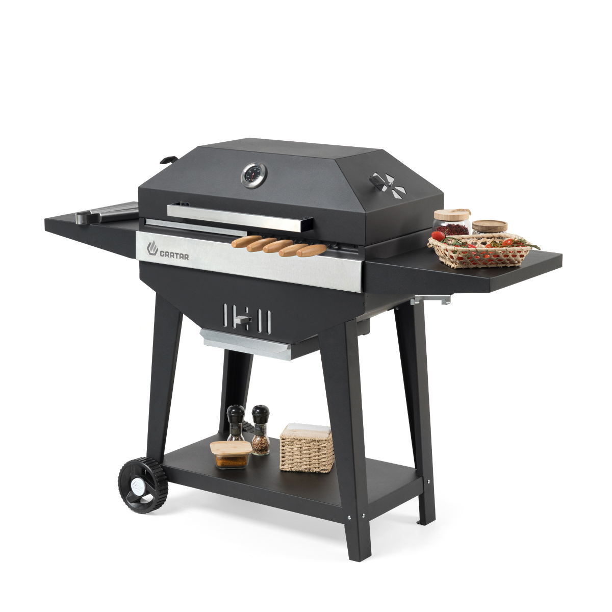 Master 3.0 – вместительный гриль с крышкой барбекю. Оснащен всеми необходимыми функциями для приготовления на свежем воздухе. Уникальная форма корпуса помогает очень долго поддерживать жар даже при закрытой крышке.