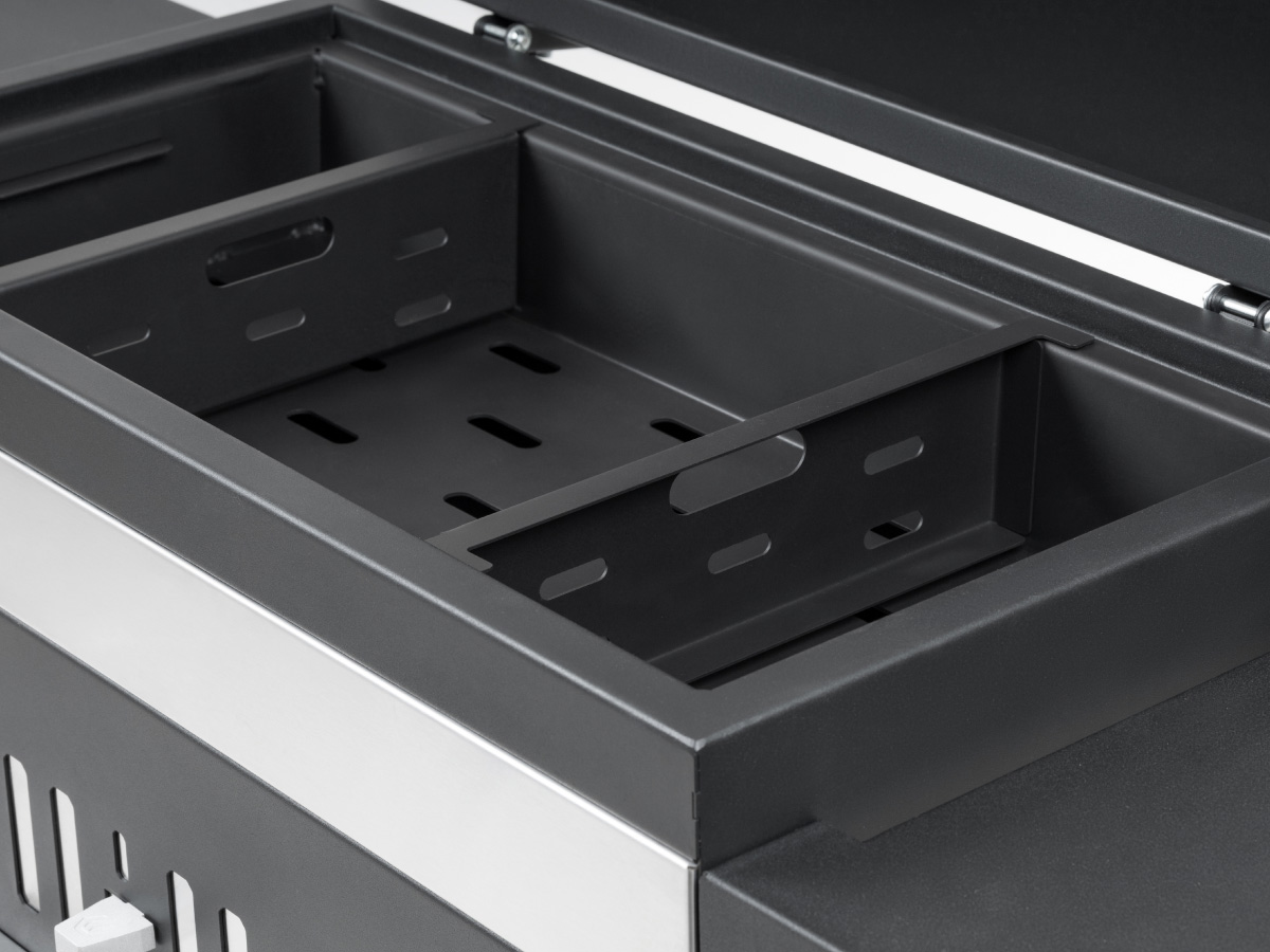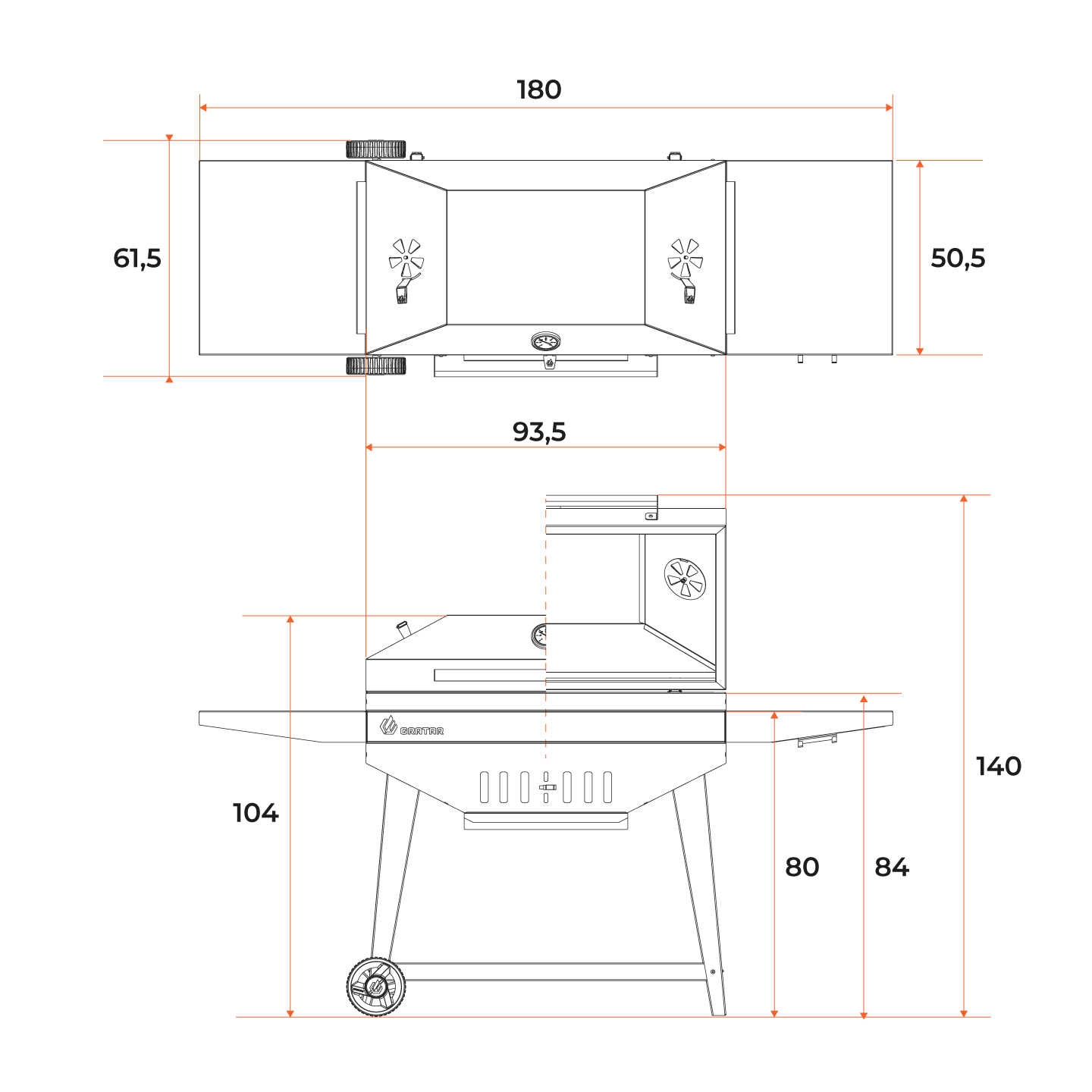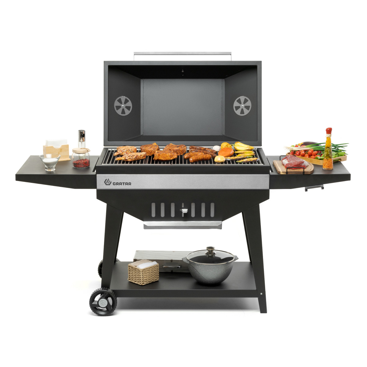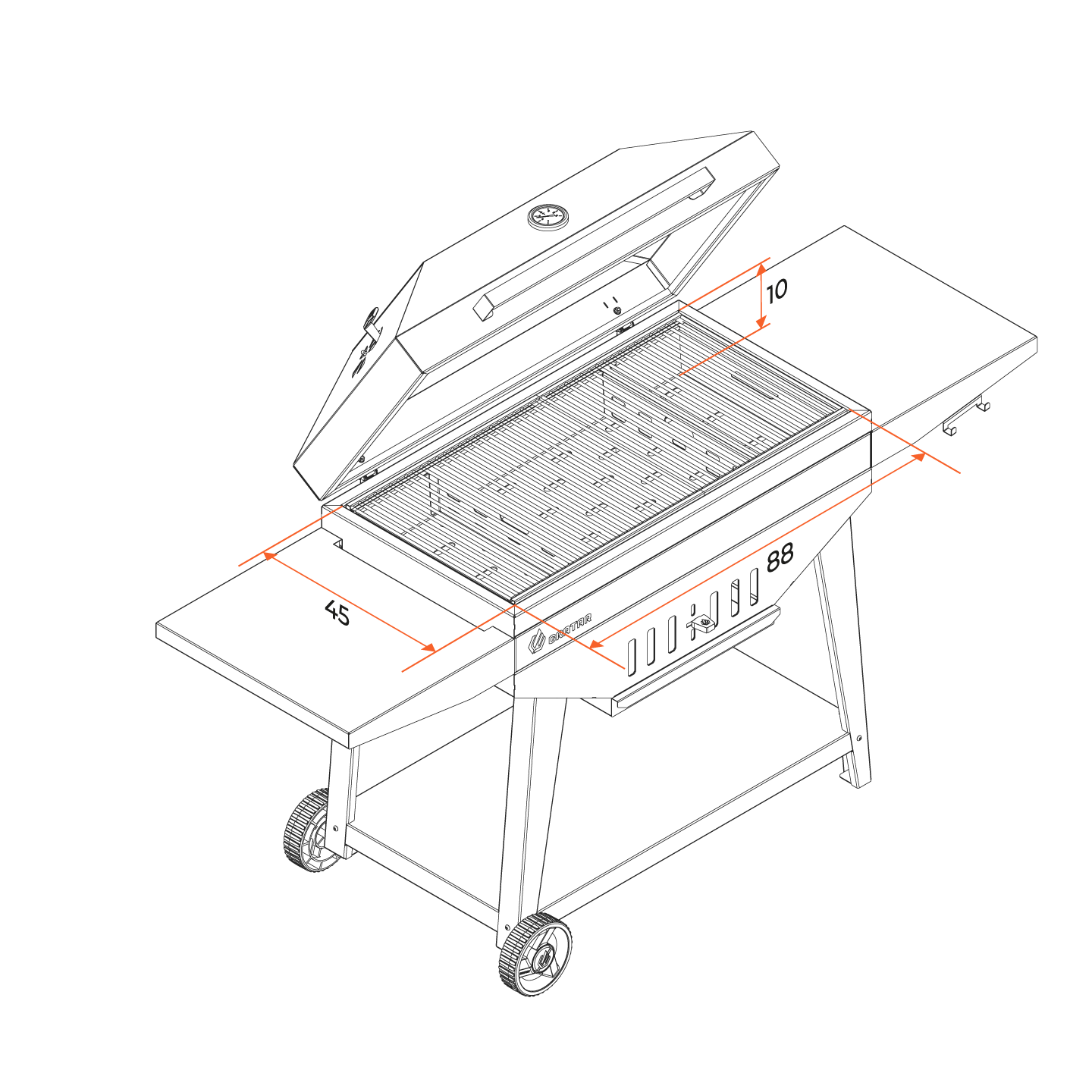 Master – вместительный угольный гриль с крышкой барбекю. Оснащен всеми необходимыми функциями для приготовления на свежем воздухе. Уникальная форма корпуса помогает очень долго поддерживать жар даже при закрытой крышке.