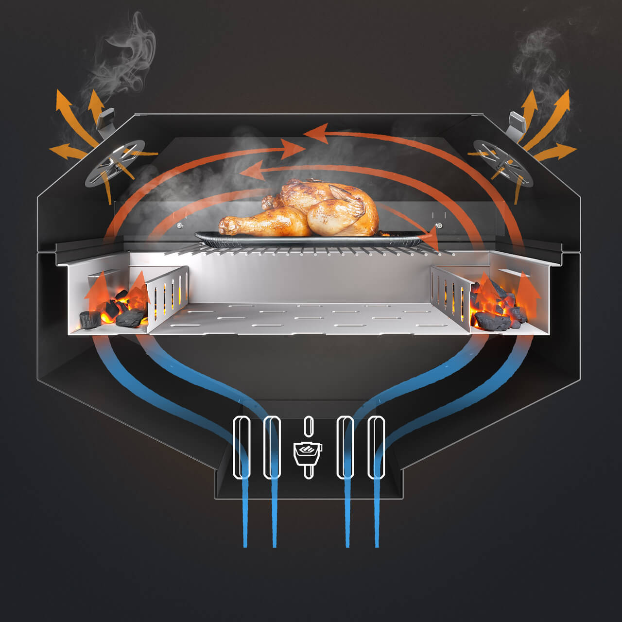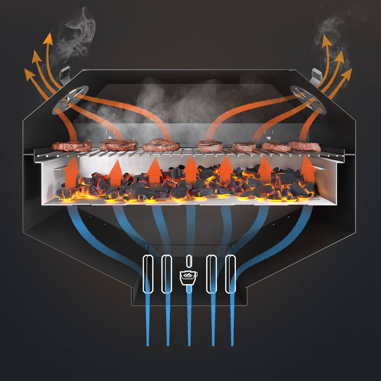 Заслонки в крышке и основании гриля для регулировки притока воздуха